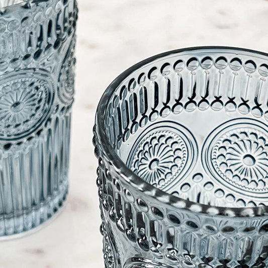 13 oz. Vintage Textured Smoke Blue Drinking Glass