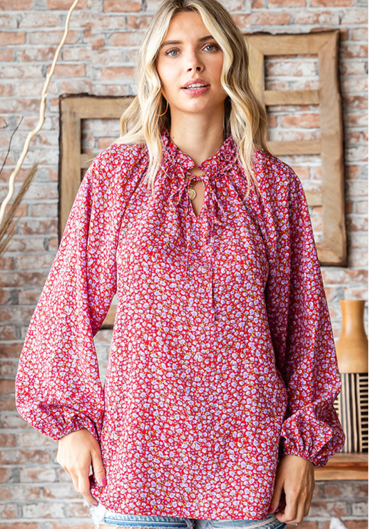 Ditsy Floral Long Sleeve Blouse in Red - FINAL SALE