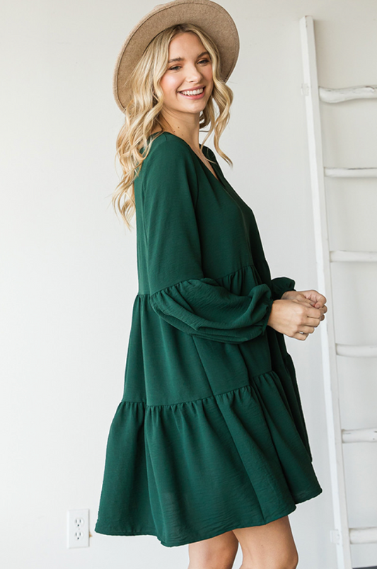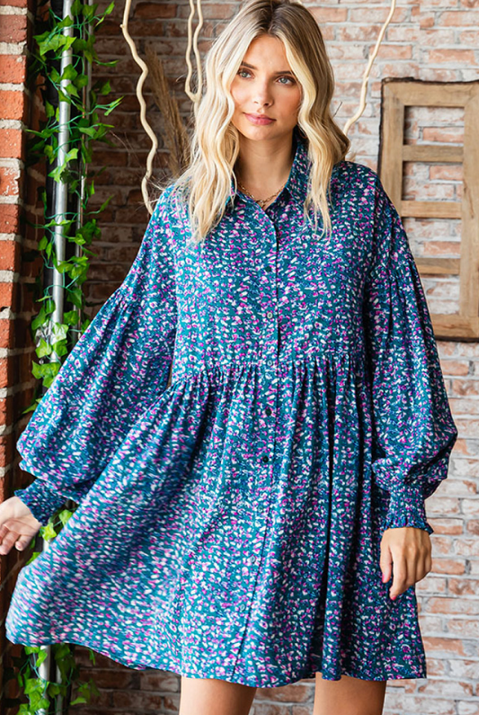 Abstract Print Babydoll Dress in Teal - FINAL SALE