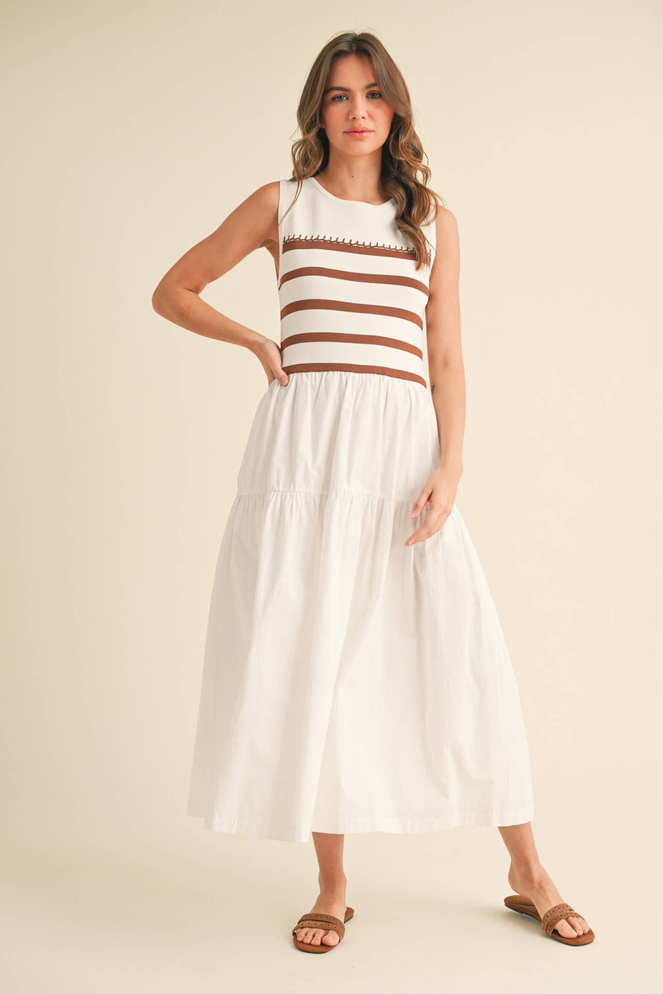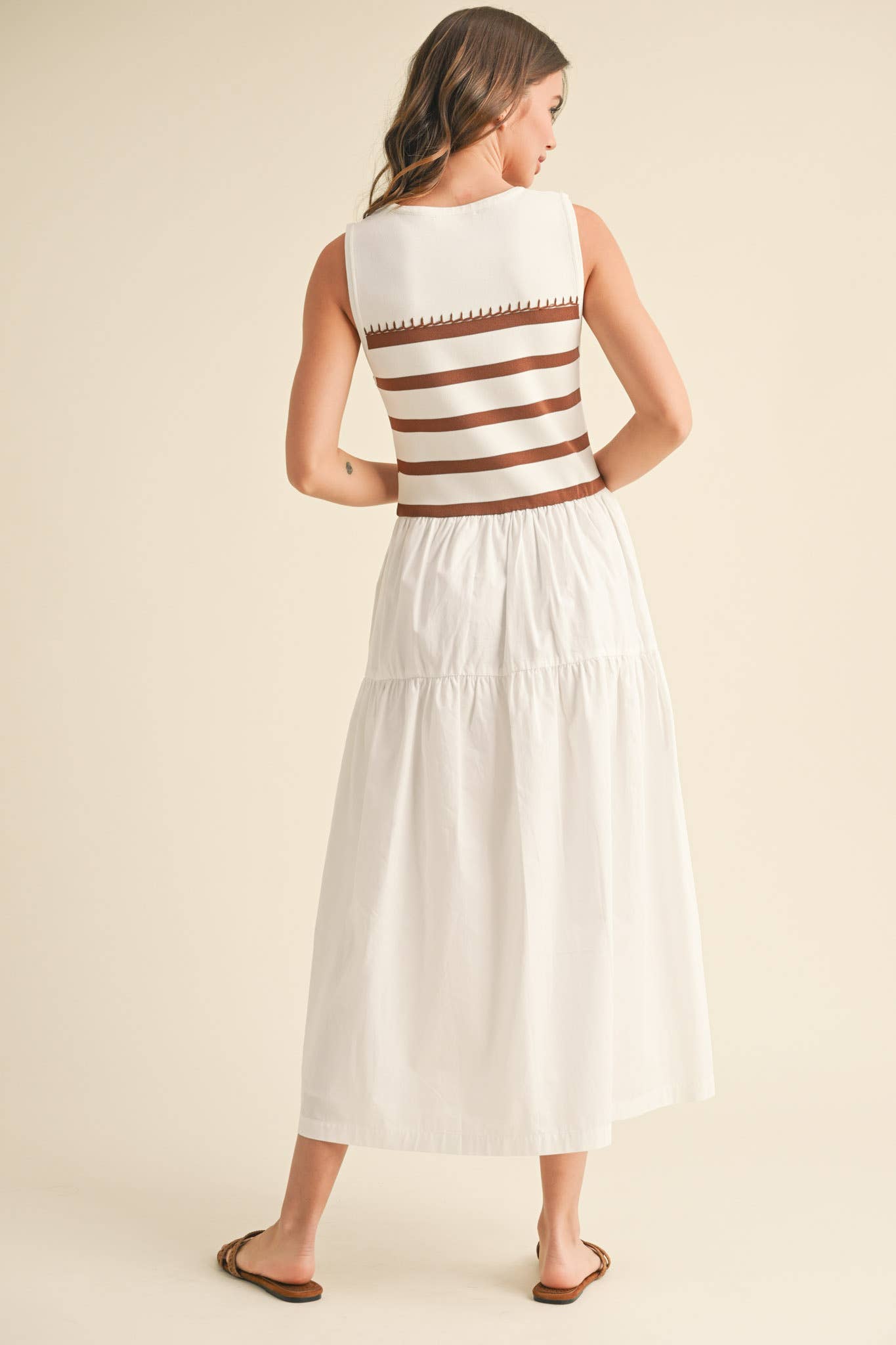 + Mixed media striped midi dress